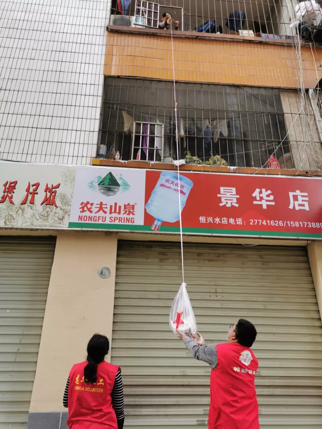 “為了實(shí)現(xiàn)無接觸配送,每天阿姨會(huì)把繩索放下來,她會(huì)電話告訴我們需要的菜品和生活用品,我們把她需要的東西都‘送’上去”。趙發(fā)威日常除了服務(wù)社區(qū)弱勢(shì)群體購買生活必需品,還承擔(dān)機(jī)動(dòng)崗為需要替崗的志愿者“愛心接力”、執(zhí)行社區(qū)抗疫檢測(cè)點(diǎn)的測(cè)溫登記工作。