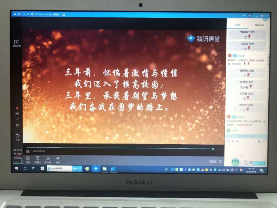 2月28日,橫崗高級中學2020屆高三全體師生利用騰訊課堂召開以班級為單位的網(wǎng)上“高考百日誓師大會”。各班精心制作PPT,提前錄制老師、家長、同學的祝福小視頻,科任老師、學生家長、學生代表連麥鼓勵,同學們最后對著電子屏幕高喊百日誓詞同時下定決心,為自己的夢想,刻苦拼搏,永不言悔。網(wǎng)上“百日誓師”豪情滿懷、溫情涌動、感人至深。