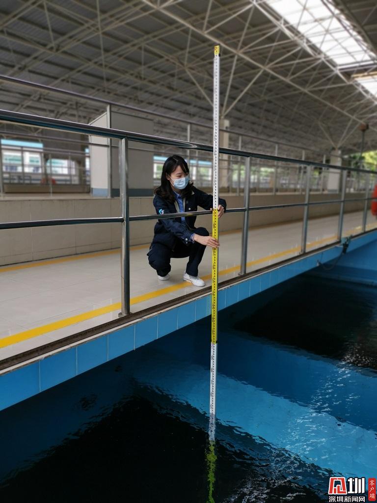 一點一滴,做到最好。每一滴水都飽含深水人的大愛,每一滴水都是深水人的莊嚴承諾。水務(wù)集團梅林水廠工程師王姝凡,正檢測炭濾料厚度變化。