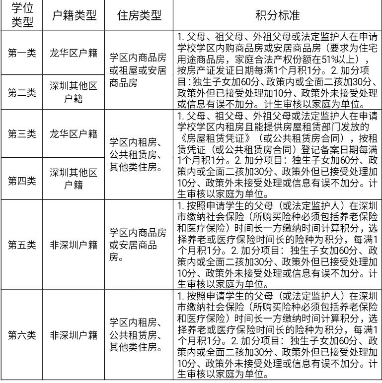 深圳戶籍。申請入學(xué)適齡兒童、少年的父母(或法定監(jiān)護(hù)人)戶籍遷入深圳時間最長的一方計(jì)算積分,每滿一個月加0.1分。