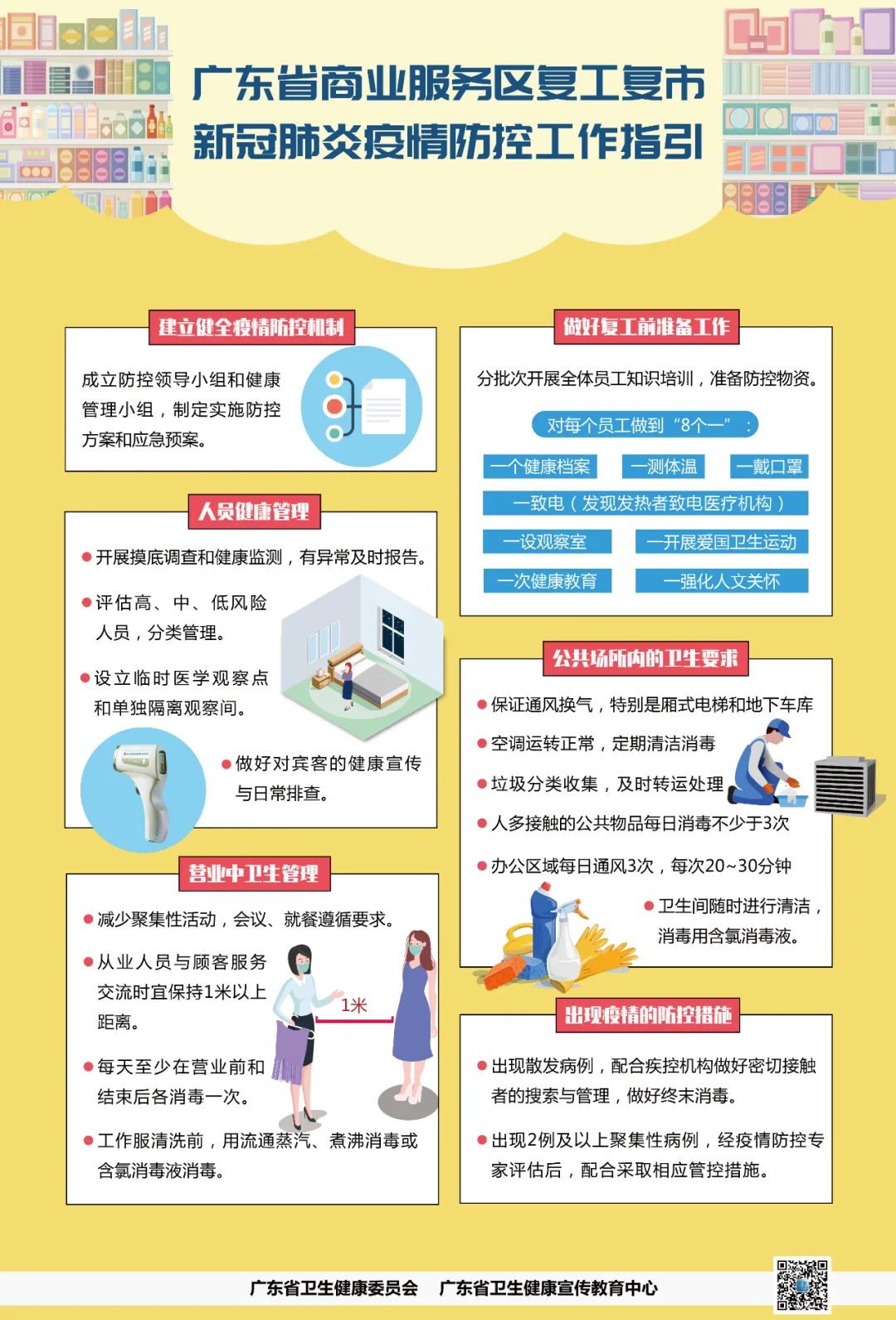 (1)制定相關(guān)工作措施。包括但不限于復(fù)市后市場進(jìn)出口管理、現(xiàn)場管理、健康管理、衛(wèi)生管理、應(yīng)急預(yù)案管理、防疫培訓(xùn)等工作方案或工作指引。
