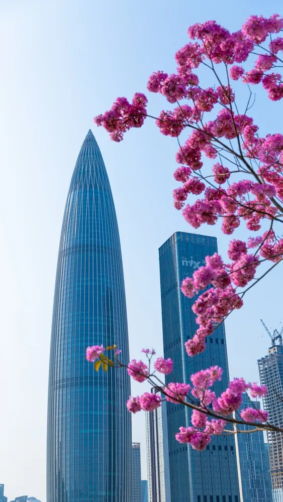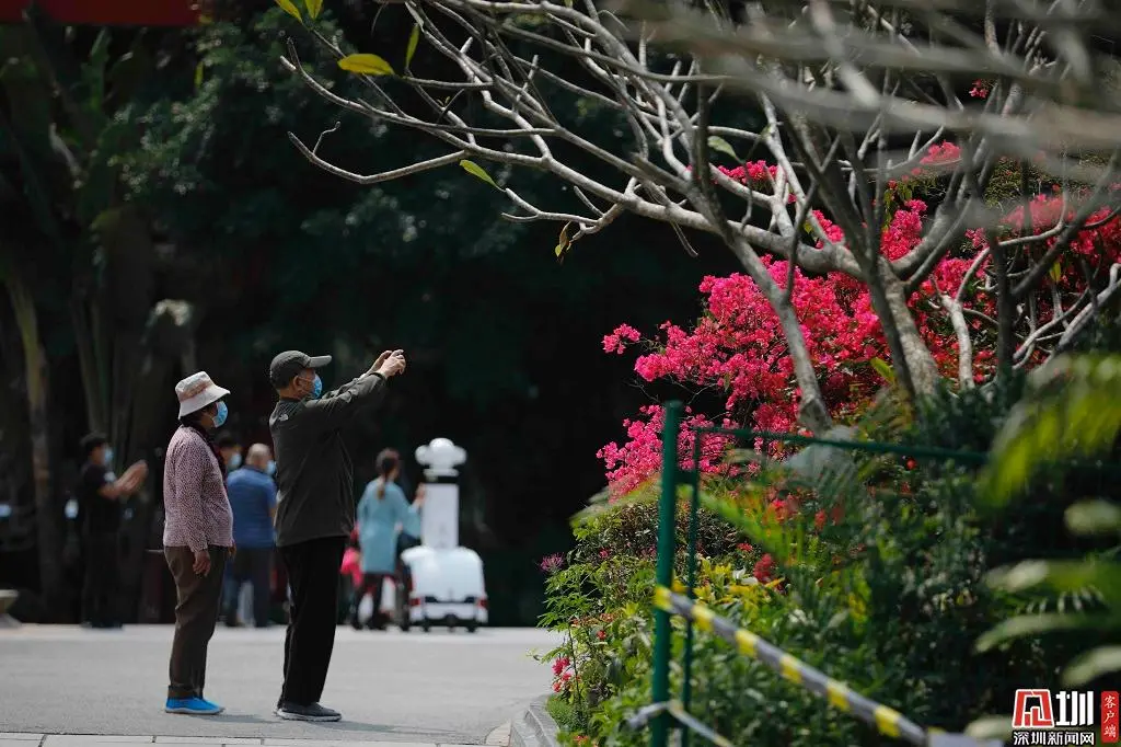 市民們紛紛拿起手上的長(zhǎng)槍短炮,以深圳藍(lán)為背景,記錄下春日美景。