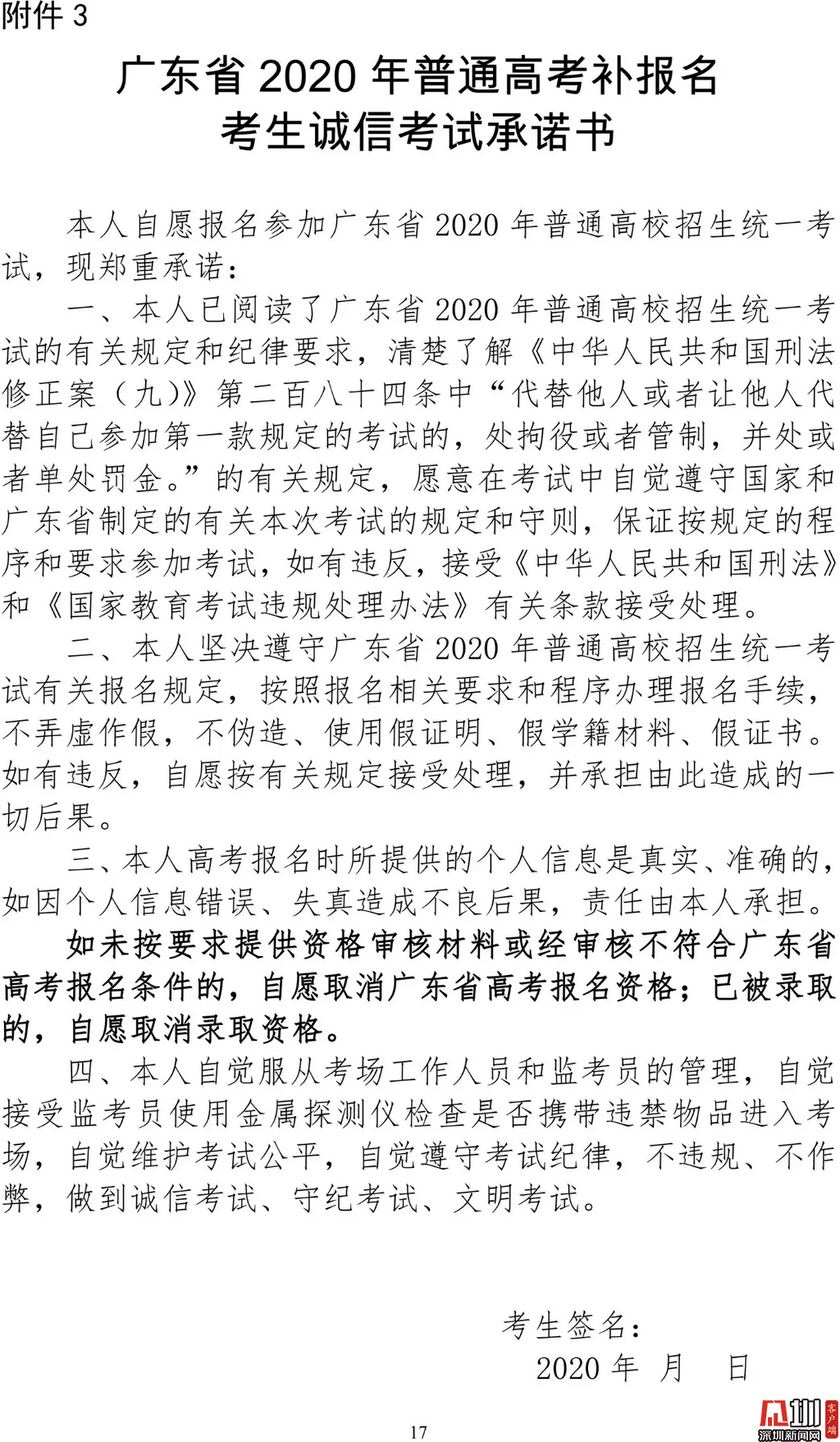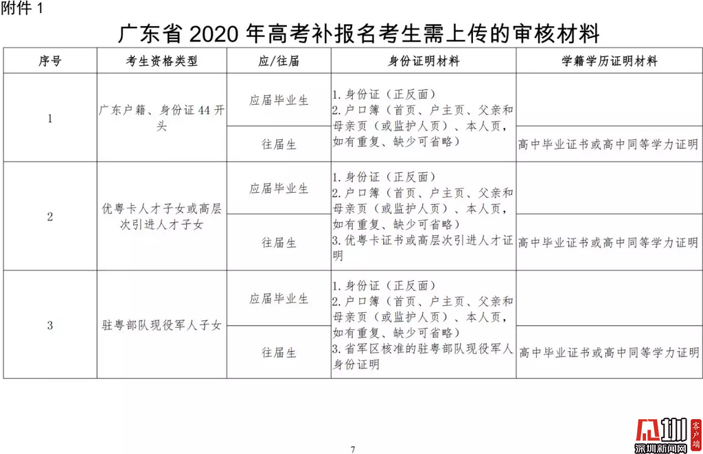見圳客戶端·深圳新聞網(wǎng)2020年3月19日訊(見圳客戶端、深圳新聞網(wǎng)記者 金洪竹)3月18日,記者從廣東省招生委員會辦公室獲悉,為滿足退伍軍人、運動訓(xùn)練及武術(shù)與民族傳統(tǒng)體育考生、高職院校自主招生考生等符合我省高考條件,因各種原因尚未參加高考報名人員的需求,經(jīng)研究決定安排一次高考補報名,補報名時間為3月23-26日。同時,為確保考生和考試工作人員的生命安全和身體健康,減少聚集,本次高考補報名采取先線上辦理、后補驗材料的方式進(jìn)行。