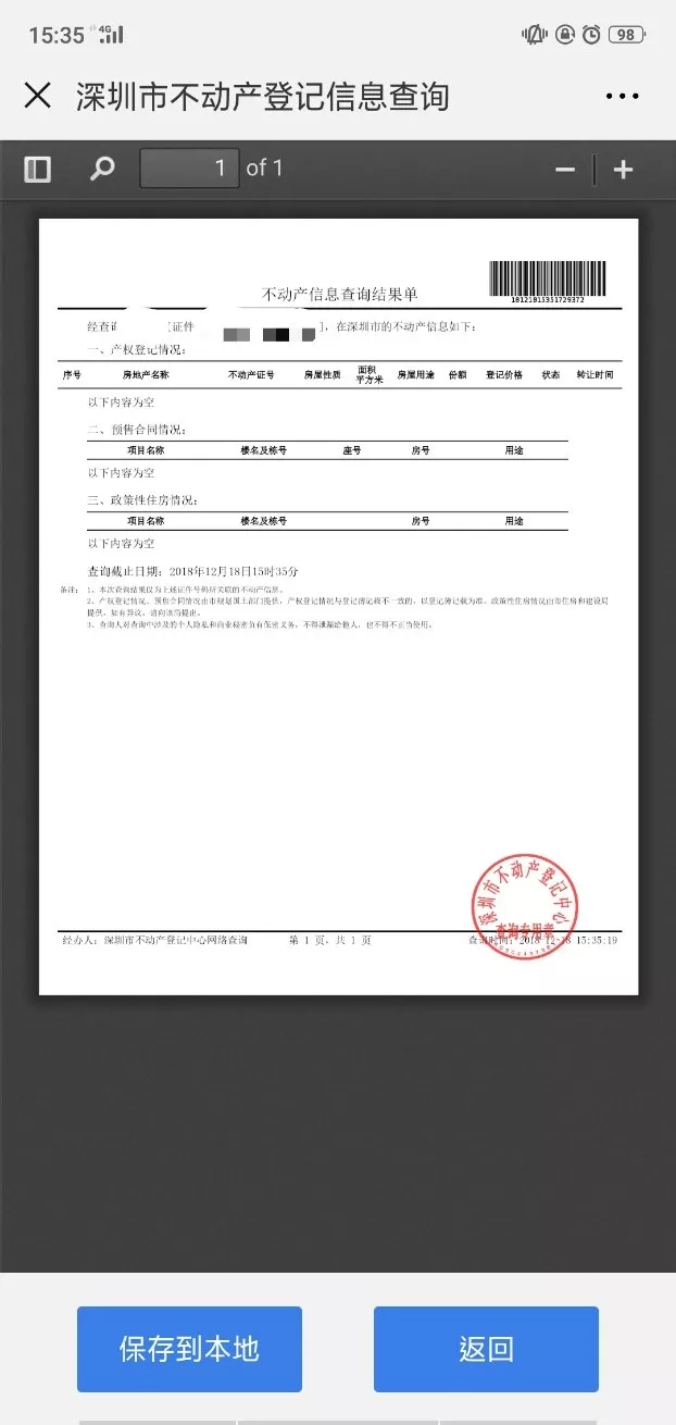 PDF文件里的電子公章是經(jīng)國家密碼管理局認證并通過公安部安全檢測合格的電子簽章系統(tǒng)印章。本查詢生成證明與深圳市不動產(chǎn)登記中心各登記所人工窗口及現(xiàn)場自助終端機打印結(jié)果具有同等效力。