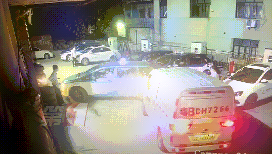 監(jiān)控畫面顯示,25日晚上23點(diǎn)左右,一輛出租車和一輛面包車先后到達(dá)龍崗大道木棉灣路段的一個(gè)充電站。出租車司機(jī)先找到了一個(gè)位置,準(zhǔn)備倒入充電時(shí),后面的面包車突然往前開,兩名司機(jī)因?yàn)橥\囄坏膯栴}發(fā)生爭執(zhí)。隨后,出租車司機(jī)下車?yán)碚?,?dòng)手推搡了面包車司機(jī)一下。