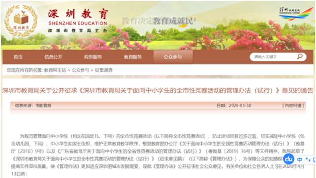 深圳市教育局:不舉辦面向義務教育階 ...