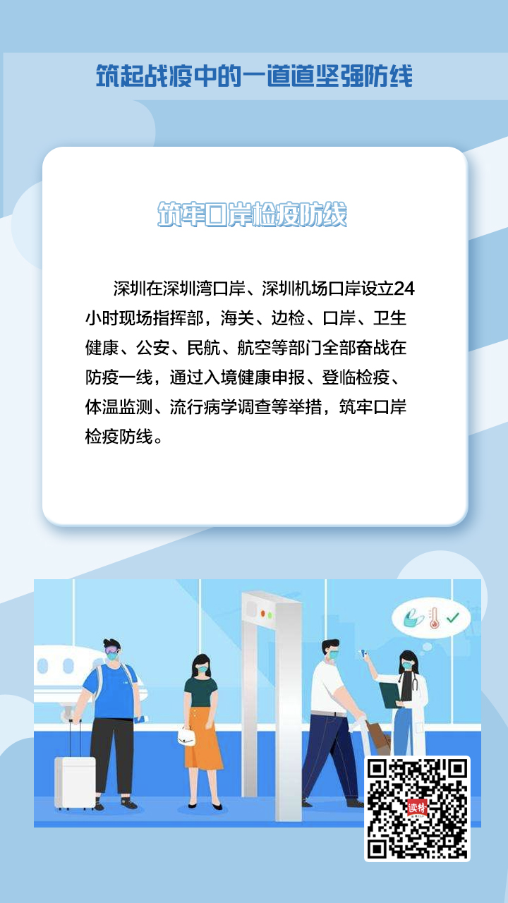 深圳在深圳灣口岸、深圳機(jī)場(chǎng)口岸設(shè)立24小時(shí)現(xiàn)場(chǎng)指揮部,海關(guān)、邊檢、口岸、衛(wèi)生健康、公安、民航、航空等部門全部奮戰(zhàn)在防疫一線,通過(guò)入境健康申報(bào)、登臨檢疫、體溫監(jiān)測(cè)、流行病學(xué)調(diào)查等舉措,筑牢口岸檢疫防線。