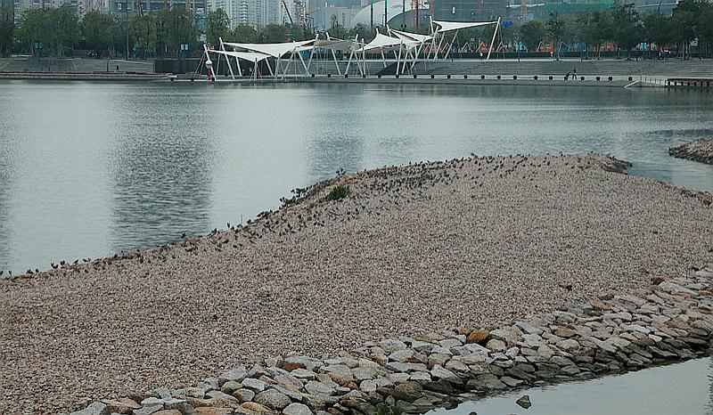 記者在采訪中了解到,2017年初,深圳觀鳥(niǎo)人士發(fā)現(xiàn)人才公園建設(shè)接近尾聲,人工島嶼種植了密集的植物。深圳市觀鳥(niǎo)協(xié)會(huì)隨即向人才公園建設(shè)主管部門提出《人才公園鳥(niǎo)類棲息地改善建議》。相關(guān)政府部門在征詢了廣東內(nèi)伶仃福田國(guó)家級(jí)自然保護(hù)區(qū)管理局、市野生動(dòng)植物保護(hù)管理處、南山區(qū)城管局和深圳市觀鳥(niǎo)協(xié)會(huì)的意見(jiàn)和建議后,就協(xié)調(diào)處理人才公園水鳥(niǎo)棲息地等問(wèn)題達(dá)成了一致意見(jiàn),決定在適當(dāng)位置增加浮灘,增加水鳥(niǎo)停留棲息的空間。整改后的人工碎石灘,很快便吸引了大量的鸻鷸類候鳥(niǎo)前來(lái)停棲。"這個(gè)人工石灘的距離適中,既方便人類觀察,又不至于讓鳥(niǎo)兒感覺(jué)受到威脅,這么多年來(lái),人與候鳥(niǎo)之間一直相安無(wú)事,鳥(niǎo)兒也已經(jīng)習(xí)慣了這里的環(huán)境,所以它們才能在人類的眼皮底下安心地打盹兒。""PT"向記者介紹說(shuō)。