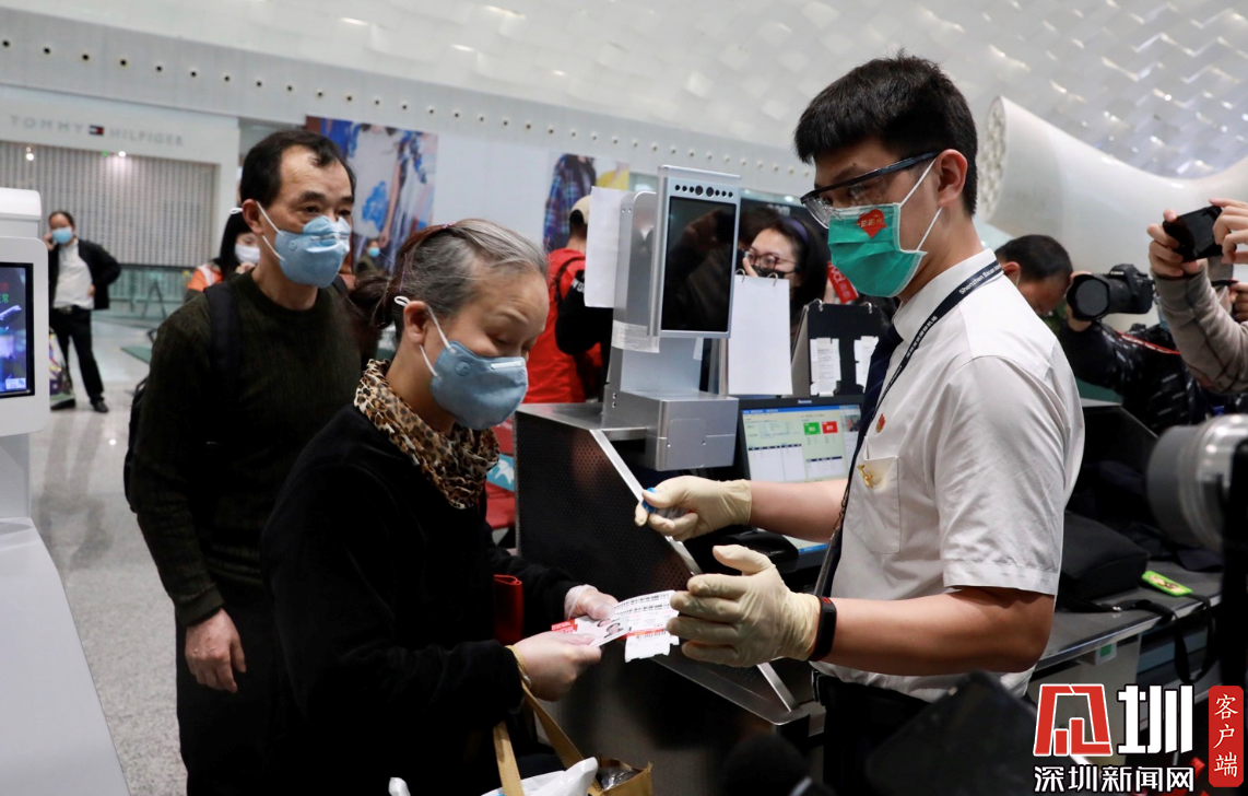 武漢重啟,深圳第一班飛往武漢的航班正在進(jìn)行登機(jī)手續(xù)。(鐘鴻冰攝)