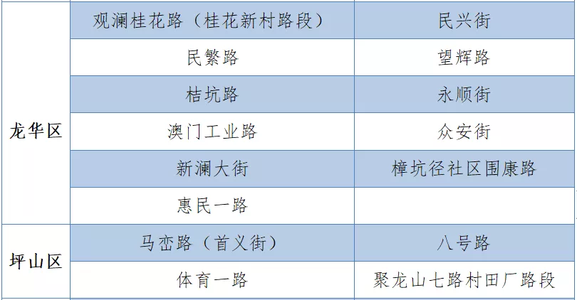 具體設(shè)置路段請看表格