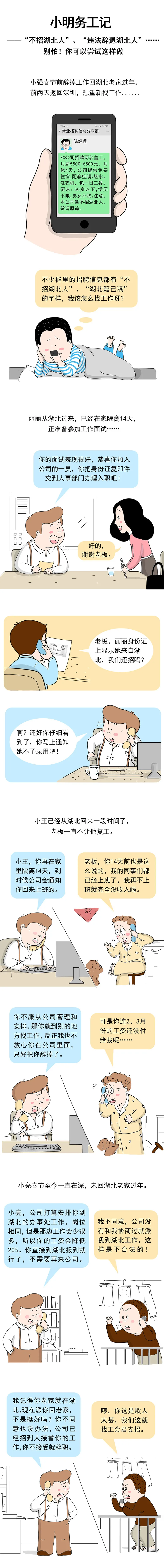 目前,仍有小部分湖北職工在深務工時遭到了如漫畫所描繪的就業(yè)歧視,我們要堅決反對就業(yè)環(huán)境中歧視湖北人的行為!