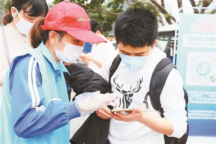 章閣社區(qū)工作人員指導(dǎo)居民申報個人信息。