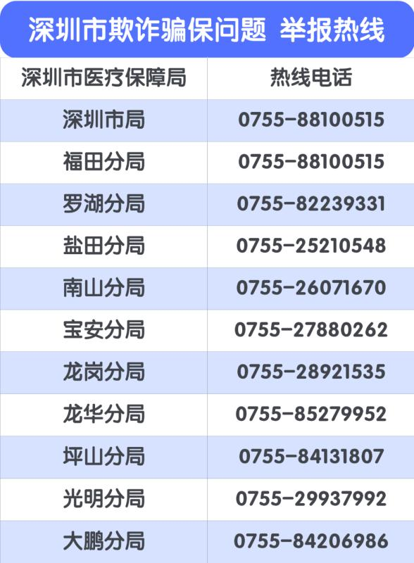 市醫(yī)保局已在深圳市各區(qū)設(shè)立投訴舉報(bào)電話,歡迎廣大市民共同參與醫(yī)保基金監(jiān)督管理。市民可通過(guò)實(shí)名舉報(bào)和匿名舉報(bào)方式檢舉、揭發(fā)欺詐騙保行為,經(jīng)查證屬實(shí)的,將根據(jù)《深圳市欺詐騙取醫(yī)療保障基金行為舉報(bào)獎(jiǎng)勵(lì)實(shí)施細(xì)則(試行)》對(duì)舉報(bào)人予以獎(jiǎng)勵(lì),獎(jiǎng)金最高可達(dá)10萬(wàn)元?。ㄓ浾?莊瑞玉)