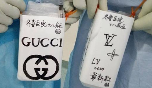 前段時間,一批新款獨家限量版名牌桶包亮相武漢大學(xué)人民醫(yī)院。因防護服沒有口袋,醫(yī)護人員們便突發(fā)奇想用塑料空瓶、事先畫好的裝飾圖、膠水和方便斜挎的繩子做出了桶包↓↓
