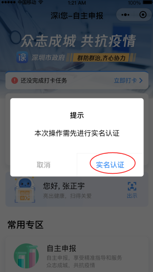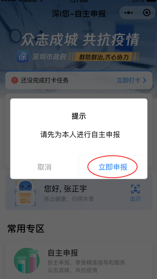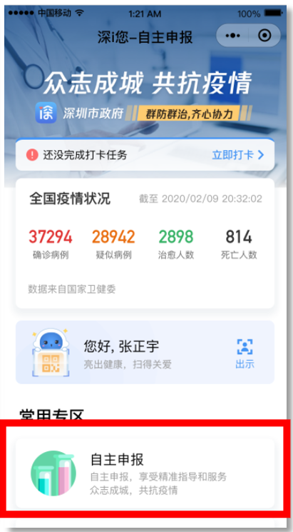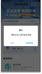 第二步:點擊底部菜單欄“健康申報”-“深i您”進入申報系統(tǒng)。