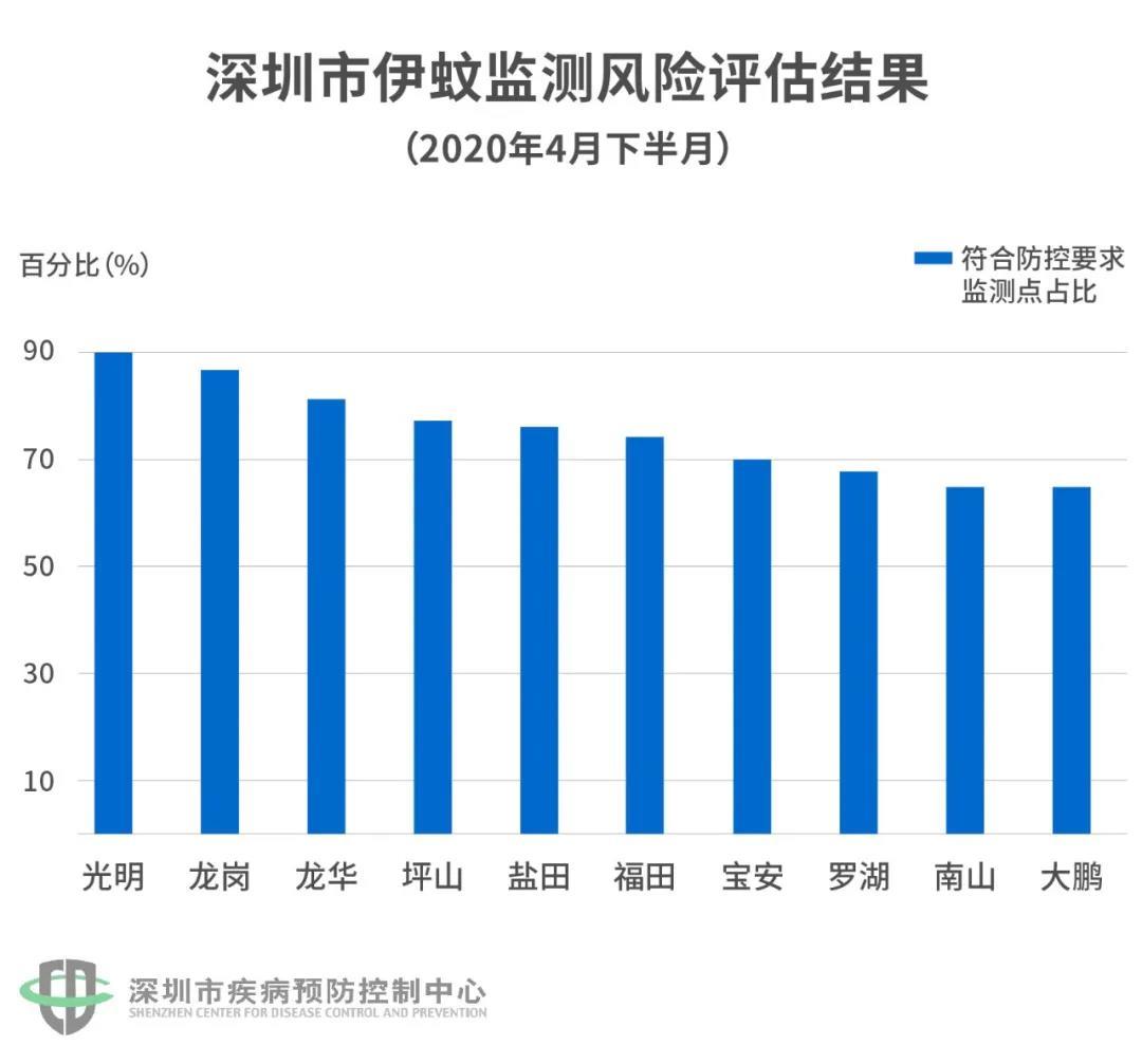 這張圖是各區(qū)蚊子監(jiān)測的“成績表”。分數(shù)越高,說明合格的監(jiān)測點越多,“安全系數(shù)”越高。