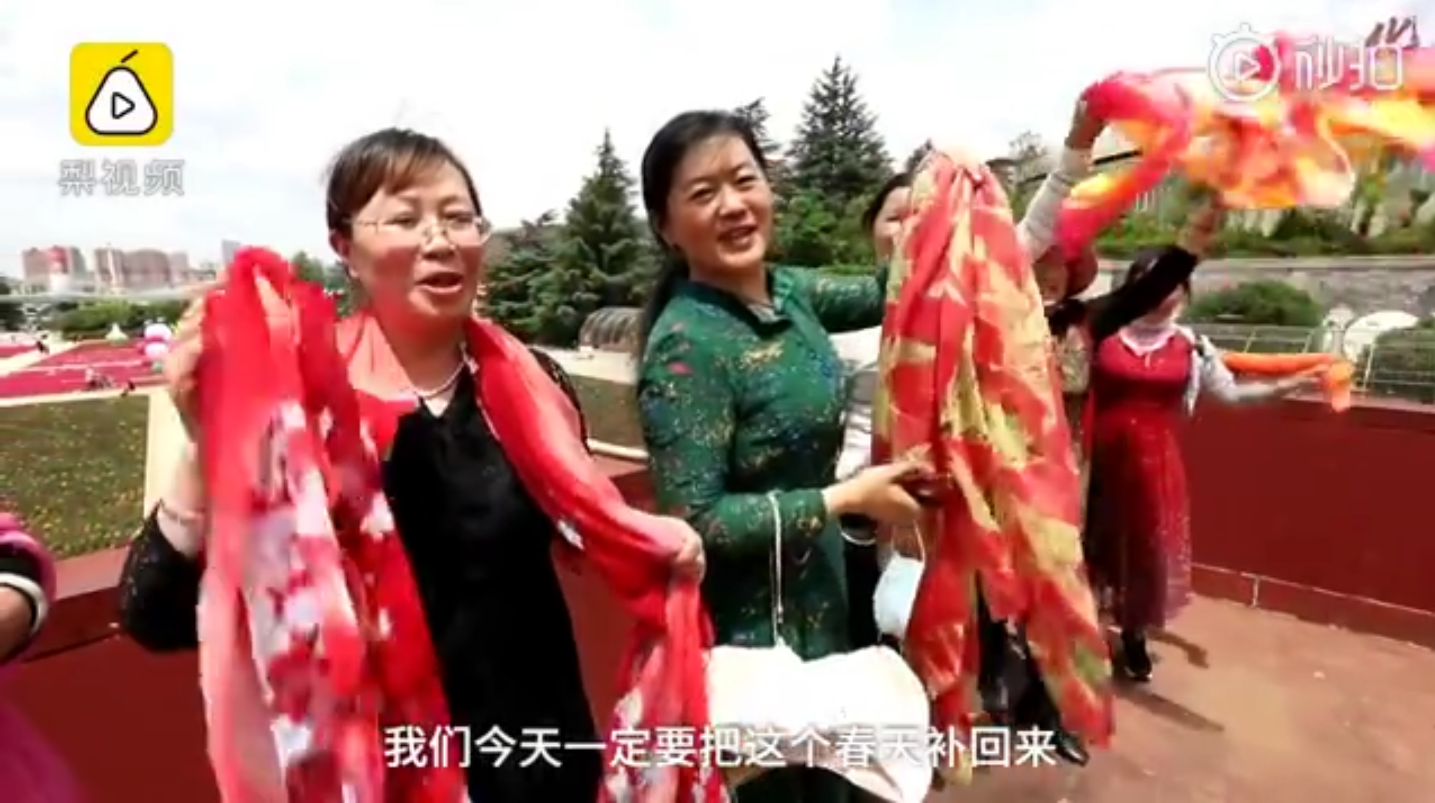 大媽們帶50條絲巾到景區(qū)拍照:要把春天補(bǔ)回來