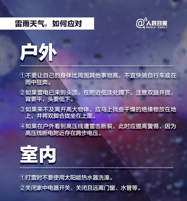 √雷雨天氣容易發(fā)生泥石流、山體滑坡,如在野外,請不要在室外逗留,盡快遠(yuǎn)離危險(xiǎn)的地方。