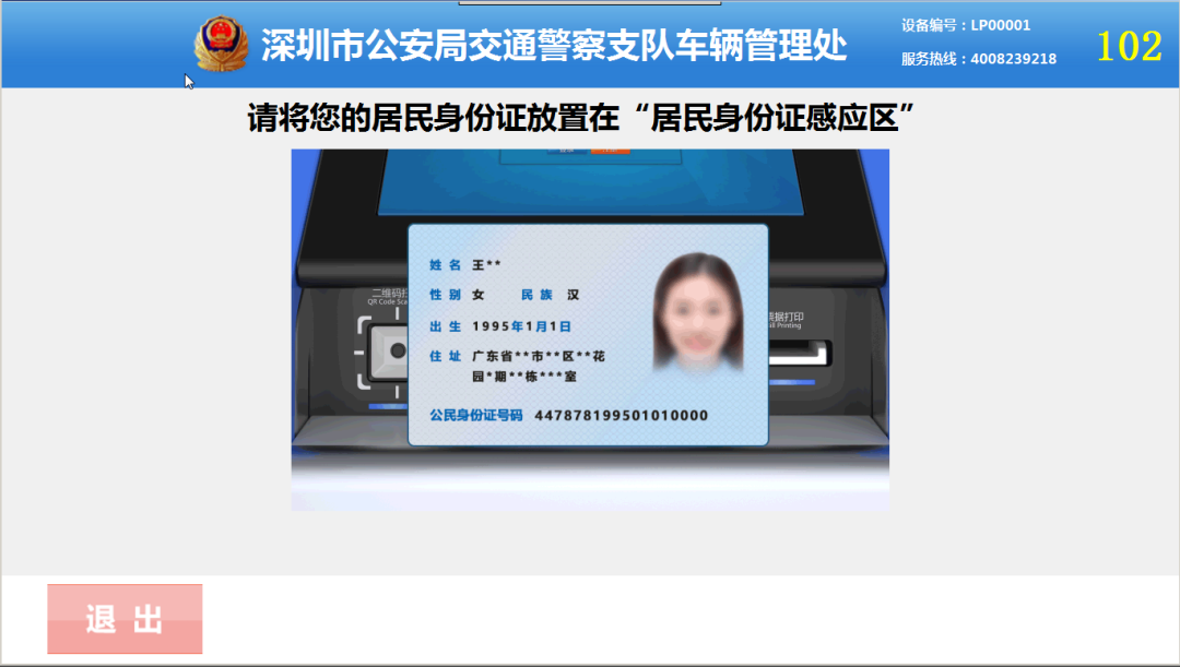 將身份證放置在讀取區(qū)內(nèi)進(jìn)行身份證信息讀取;