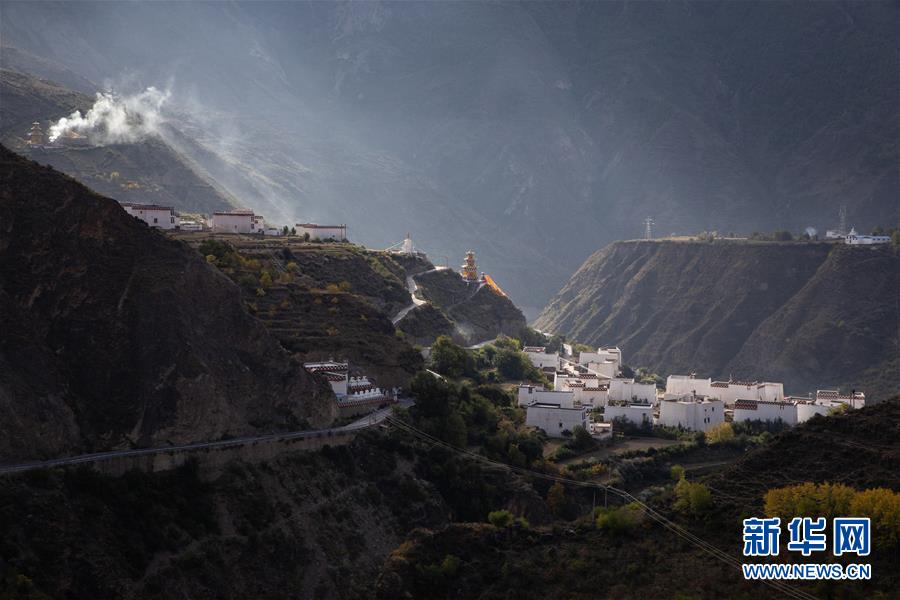 10月29日,在鄉(xiāng)城縣青麥鄉(xiāng)南吾村,清晨的陽光照亮白色民居。深秋時節(jié),四川省甘孜藏族自治州鄉(xiāng)城縣河谷地帶的民居像一顆顆白色珍珠點綴在色彩斑斕的田園中,形成一幅幅藏鄉(xiāng)田園畫卷。近年來,鄉(xiāng)城縣打造藏鄉(xiāng)田園旅游目的地,以全域旅游帶動一二三產(chǎn)業(yè)深度融合,成為稻城亞丁環(huán)線游上的一顆明珠。新華社記者江宏景攝