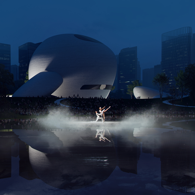 廣場(chǎng)中央的水池,可以作為劇場(chǎng),容納萬(wàn)人活動(dòng);景觀中預(yù)留出多處平臺(tái),提供公共藝術(shù)展覽、市集、藝術(shù)節(jié)、音樂節(jié)等戶外活動(dòng)場(chǎng)地;公園將城市的中軸線延續(xù)到海邊,行人步道、自行車道蜿蜒穿梭在建筑和草坪之間,為市民提供海濱休閑場(chǎng)地。