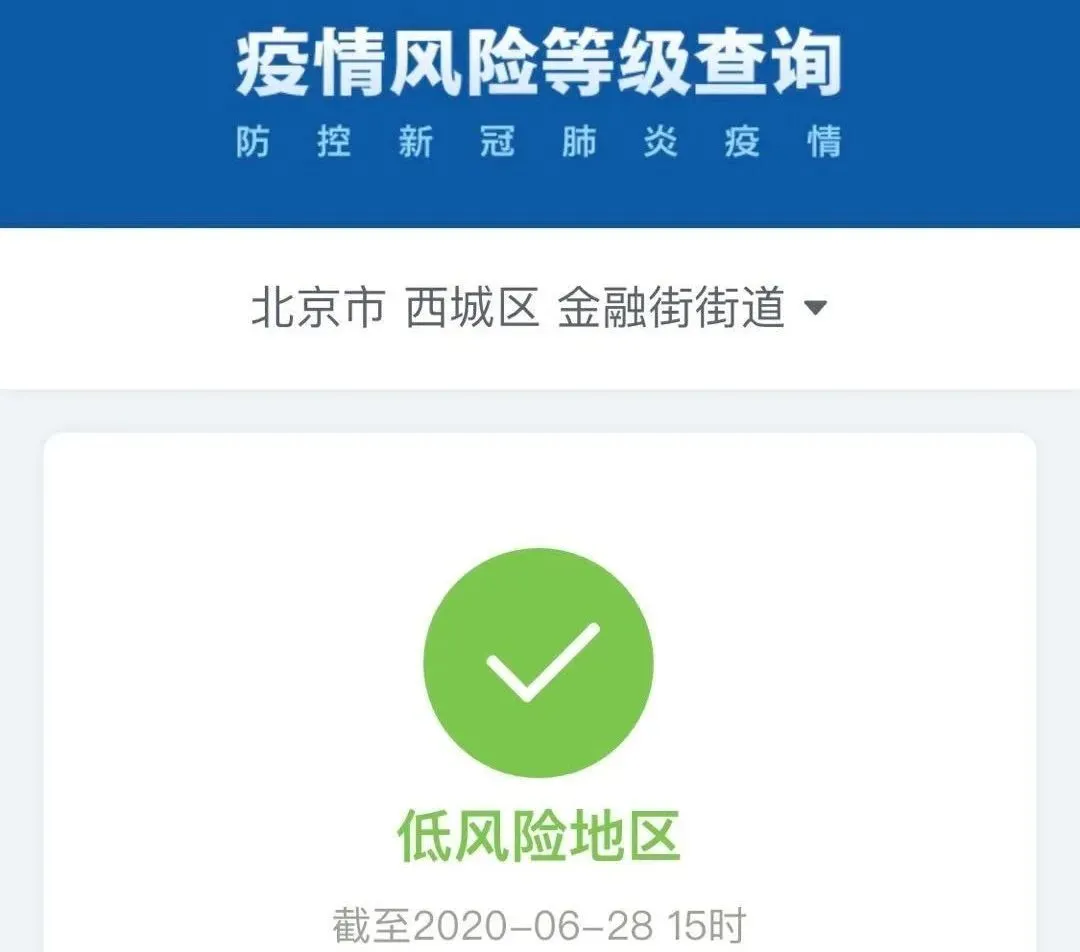 截至6月28日15時,北京市西城區(qū)金融街街道、豐臺區(qū)太平橋街道由中風險地區(qū)變更為低風險地區(qū)。