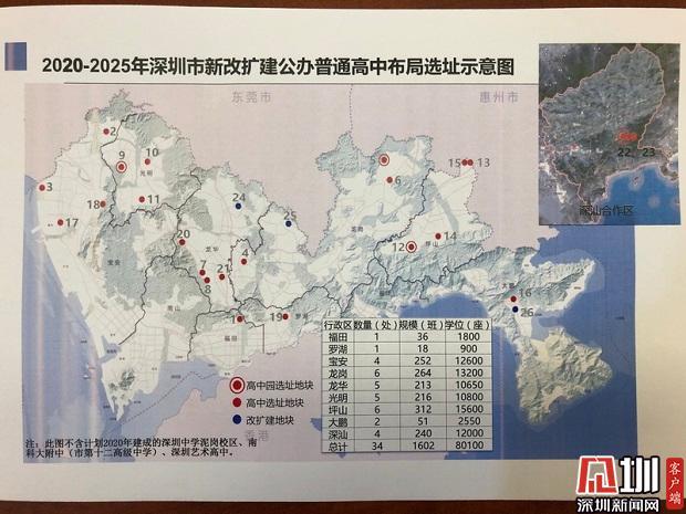 2020 -2025年深圳市新改擴(kuò)建公辦普高布局選址示意圖