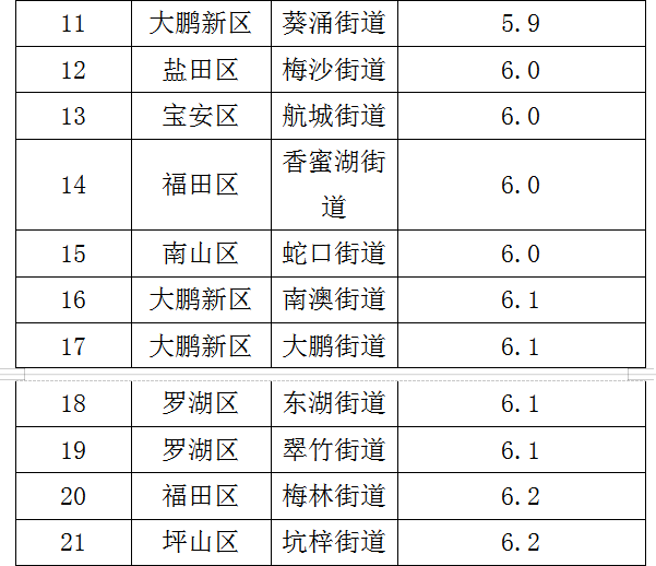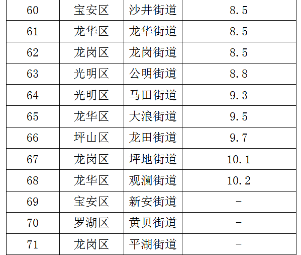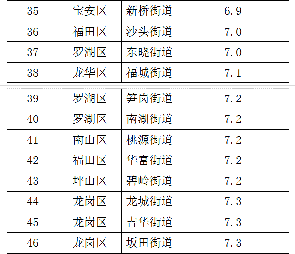 各街道及各區(qū)具體排名見(jiàn)下表。