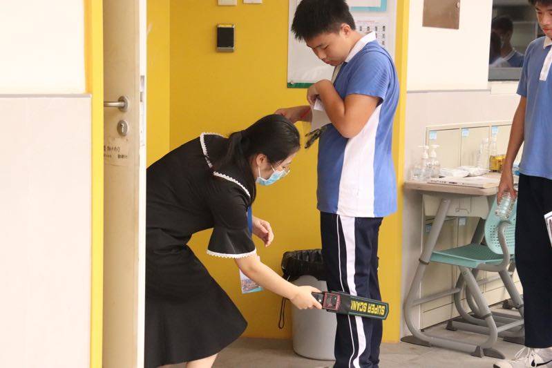坪山同心外國語學(xué)校的考生進入教室。(記者焦子宇耿超逸)