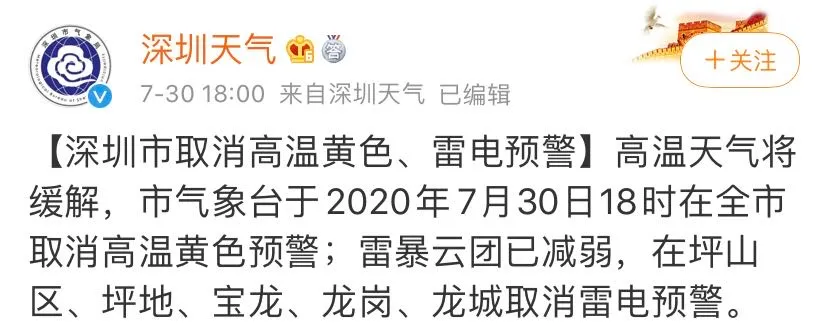 見(jiàn)圳客戶(hù)端·深圳新聞網(wǎng)2020年7月31日訊 7月30日18:00,深圳氣象臺(tái)取消了持續(xù)生效25天的高溫預(yù)警。