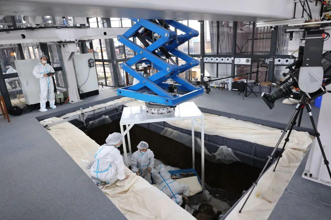 記者看到,在考古發(fā)掘現(xiàn)場設(shè)有考古實驗室,此舉屬于首創(chuàng),實現(xiàn)考古出土文物與文物保護(hù)無縫對接。