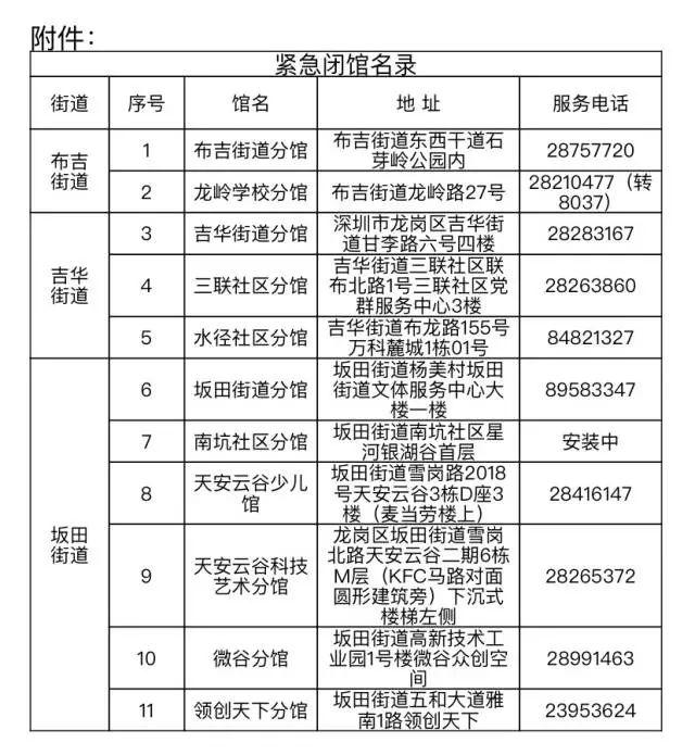 1月7日,深圳市龍崗區(qū)圖書館發(fā)布通知稱,因疫情防控工作需要,為保障市民讀者健康安全,經(jīng)研究決定,區(qū)圖書館在布吉、坂田和吉華三個街道的所有分館,自2022年1月7日起臨時閉館,暫停到館讀者服務(wù)和各項(xiàng)活動,進(jìn)行衛(wèi)生消殺、內(nèi)務(wù)整理等,恢復(fù)開館時間另行通知。