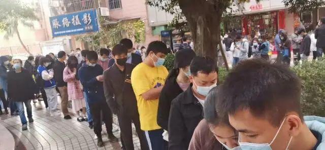▲坂田星河銀湖谷樓下也排起長長的核酸檢測隊(duì)伍,除了本地居民,人群里還有附近工地的建筑行業(yè)從業(yè)者、外賣小哥等。