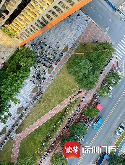 ▲布吉街道國展社區(qū)居民有序排隊(duì)做核酸