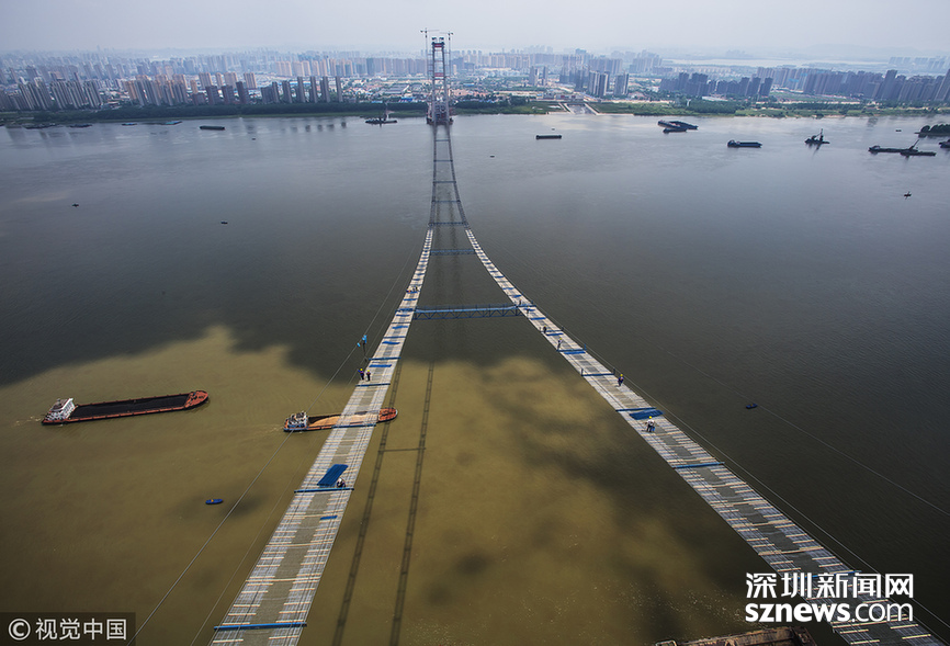 ??? 據(jù)了解,楊泗港長(zhǎng)江大橋總長(zhǎng)約4.1公里,是世界上跨度最大的雙層懸索橋,大橋預(yù)計(jì)在2019年建成通車,通車后將完善武漢城市快速路骨架系統(tǒng),緩解過(guò)江交通壓力。