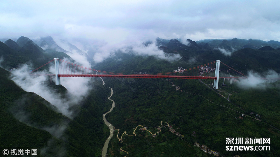 ??? 深圳新聞網(wǎng)訊? 畢都高速公路北盤江大橋是杭瑞高速公路畢都段的控制性工程,位于貴州省和云南省交界處,由貴州省和云南省共建。該橋橋面至江面高差達(dá) 565 米,成為目前世界第一高橋。主橋?yàn)殇撹炝盒崩瓨?,主?720 米,目前位居同類型橋梁2016 年12 月 29 日正式通車。