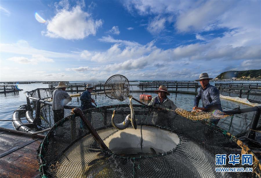8月18日,南麂島海域內的“海上牧場”養(yǎng)殖區(qū)內,漁民正捕撈大黃魚,處于仿生養(yǎng)殖環(huán)境的大黃魚需要生長2至3年。進入8月,浙江省溫州市平陽縣南麂鎮(zhèn)海域上大片的大黃魚、貽貝等特色海產品養(yǎng)殖區(qū)域迎來豐收季節(jié),養(yǎng)殖戶們駕駛漁船在養(yǎng)殖區(qū)海域進行打撈收獲,在碧海藍天下構成了一幅“海上牧場”的美麗豐收景象。近年來,南麂鎮(zhèn)政府引導漁民養(yǎng)殖戶充分發(fā)揮“靠海吃海”的資源優(yōu)勢,大力發(fā)展海洋養(yǎng)殖經濟和海島旅游經濟,實現(xiàn)了南麂由“生態(tài)美”向“產業(yè)美”,“產業(yè)美”向“經濟美”的轉變。同時該鎮(zhèn)堅持以大黃魚、貽貝等為特色產業(yè)支撐,精準發(fā)展高效海洋養(yǎng)殖業(yè),重點培養(yǎng)一批新型職業(yè)漁民,依靠專業(yè)技術支持,實現(xiàn)深海仿生養(yǎng)殖,讓好生態(tài)造就好品質,重點打造南麂養(yǎng)殖品牌,組建營銷網絡,拓展特色海產品市場。新華社記者 徐昱攝
