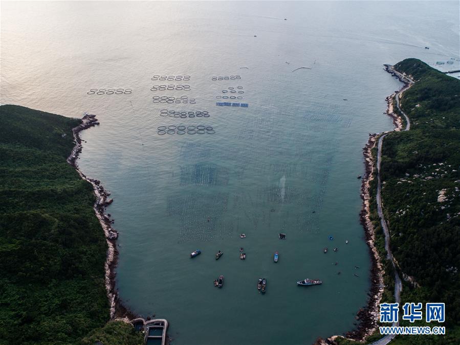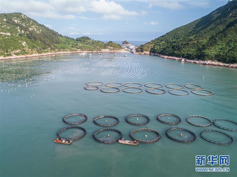8月18日,南麂島馬祖岙海域的“海上牧場”養(yǎng)殖區(qū)(無人機拍攝)。南麂島位于浙江東南海域,水質好,水溫、鹽度都適合大黃魚等養(yǎng)殖魚類的生長繁殖,因此當?shù)氐乃a品也一直保持了較高的品質和口碑。進入8月,浙江省溫州市平陽縣南麂鎮(zhèn)海域上大片的大黃魚、貽貝等特色海產品養(yǎng)殖區(qū)域迎來豐收季節(jié),養(yǎng)殖戶們駕駛漁船在養(yǎng)殖區(qū)海域進行打撈收獲,在碧海藍天下構成了一幅“海上牧場”的美麗豐收景象。近年來,南麂鎮(zhèn)政府引導漁民養(yǎng)殖戶充分發(fā)揮“靠海吃?!钡馁Y源優(yōu)勢,大力發(fā)展海洋養(yǎng)殖經濟和海島旅游經濟,實現(xiàn)了南麂由“生態(tài)美”向“產業(yè)美”,“產業(yè)美”向“經濟美”的轉變。同時該鎮(zhèn)堅持以大黃魚、貽貝等為特色產業(yè)支撐,精準發(fā)展高效海洋養(yǎng)殖業(yè),重點培養(yǎng)一批新型職業(yè)漁民,依靠專業(yè)技術支持,實現(xiàn)深海仿生養(yǎng)殖,讓好生態(tài)造就好品質,重點打造南麂養(yǎng)殖品牌,組建營銷網絡,拓展特色海產品市場。新華社記者 徐昱攝