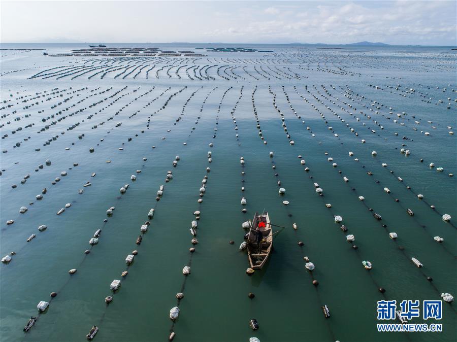 8月18日,南麂島馬祖岙海灣內,養(yǎng)殖戶乘船在貽貝養(yǎng)殖區(qū)內作業(yè)(無人機拍攝)。進入8月,浙江省溫州市平陽縣南麂鎮(zhèn)海域上大片的大黃魚、貽貝等特色海產品養(yǎng)殖區(qū)域迎來豐收季節(jié),養(yǎng)殖戶們駕駛漁船在養(yǎng)殖區(qū)海域進行打撈收獲,在碧海藍天下構成了一幅“海上牧場”的美麗豐收景象。近年來,南麂鎮(zhèn)政府引導漁民養(yǎng)殖戶充分發(fā)揮“靠海吃?!钡馁Y源優(yōu)勢,大力發(fā)展海洋養(yǎng)殖經濟和海島旅游經濟,實現(xiàn)了南麂由“生態(tài)美”向“產業(yè)美”,“產業(yè)美”向“經濟美”的轉變。同時該鎮(zhèn)堅持以大黃魚、貽貝等為特色產業(yè)支撐,精準發(fā)展高效海洋養(yǎng)殖業(yè),重點培養(yǎng)一批新型職業(yè)漁民,依靠專業(yè)技術支持,實現(xiàn)深海仿生養(yǎng)殖,讓好生態(tài)造就好品質,重點打造南麂養(yǎng)殖品牌,組建營銷網絡,拓展特色海產品市場。新華社記者 徐昱攝