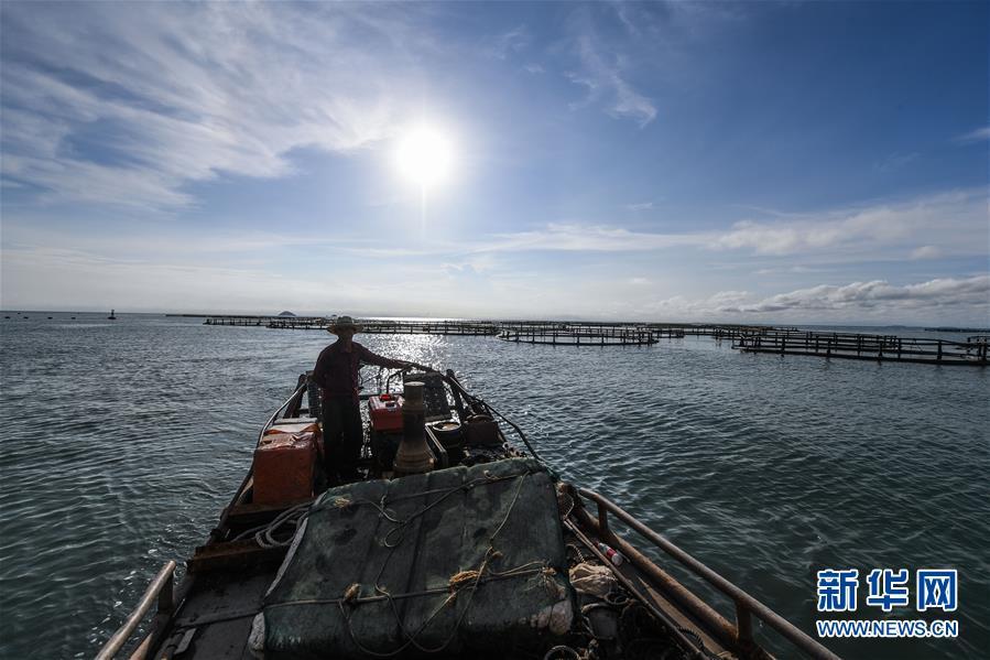 8月18日,南麂島海域的“海上牧場”養(yǎng)殖區(qū)內,漁民駕駛漁船進行養(yǎng)殖作業(yè)。進入8月,浙江省溫州市平陽縣南麂鎮(zhèn)海域上大片的大黃魚、貽貝等特色海產品養(yǎng)殖區(qū)域迎來豐收季節(jié),養(yǎng)殖戶們駕駛漁船在養(yǎng)殖區(qū)海域進行打撈收獲,在碧海藍天下構成了一幅“海上牧場”的美麗豐收景象。近年來,南麂鎮(zhèn)政府引導漁民養(yǎng)殖戶充分發(fā)揮“靠海吃?!钡馁Y源優(yōu)勢,大力發(fā)展海洋養(yǎng)殖經濟和海島旅游經濟,實現(xiàn)了南麂由“生態(tài)美”向“產業(yè)美”,“產業(yè)美”向“經濟美”的轉變。同時該鎮(zhèn)堅持以大黃魚、貽貝等為特色產業(yè)支撐,精準發(fā)展高效海洋養(yǎng)殖業(yè),重點培養(yǎng)一批新型職業(yè)漁民,依靠專業(yè)技術支持,實現(xiàn)深海仿生養(yǎng)殖,讓好生態(tài)造就好品質,重點打造南麂養(yǎng)殖品牌,組建營銷網絡,拓展特色海產品市場。新華社記者 徐昱攝