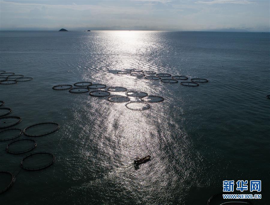 8月18日,漁船行駛在南麂島馬祖岙海域內(nèi)的“海上牧場”大黃魚養(yǎng)殖區(qū)(無人機拍攝)。進入8月,浙江省溫州市平陽縣南麂鎮(zhèn)海域上大片的大黃魚、貽貝等特色海產(chǎn)品養(yǎng)殖區(qū)域迎來豐收季節(jié),養(yǎng)殖戶們駕駛漁船在養(yǎng)殖區(qū)海域進行打撈收獲,在碧海藍天下構(gòu)成了一幅“海上牧場”的美麗豐收景象。近年來,南麂鎮(zhèn)政府引導漁民養(yǎng)殖戶充分發(fā)揮“靠海吃?!钡馁Y源優(yōu)勢,大力發(fā)展海洋養(yǎng)殖經(jīng)濟和海島旅游經(jīng)濟,實現(xiàn)了南麂由“生態(tài)美”向“產(chǎn)業(yè)美”,“產(chǎn)業(yè)美”向“經(jīng)濟美”的轉(zhuǎn)變。同時該鎮(zhèn)堅持以大黃魚、貽貝等為特色產(chǎn)業(yè)支撐,精準發(fā)展高效海洋養(yǎng)殖業(yè),重點培養(yǎng)一批新型職業(yè)漁民,依靠專業(yè)技術(shù)支持,實現(xiàn)深海仿生養(yǎng)殖,讓好生態(tài)造就好品質(zhì),重點打造南麂養(yǎng)殖品牌,組建營銷網(wǎng)絡,拓展特色海產(chǎn)品市場。新華社記者 徐昱攝
