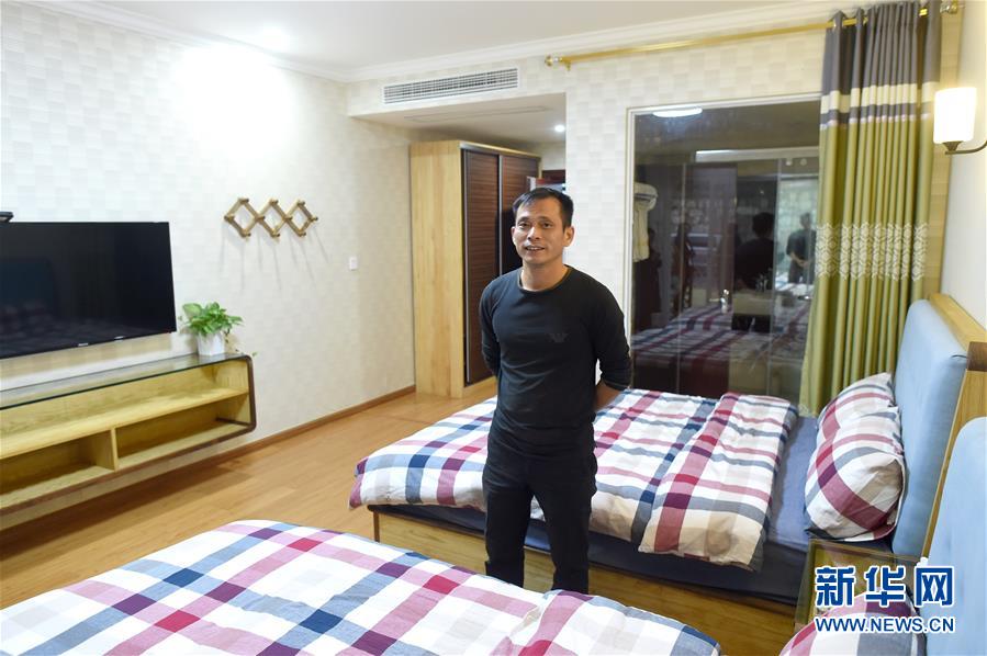 棠里塢村民宿負責(zé)人徐學(xué)德在民宿客房內(nèi)(10月16日攝)。 浙江諸暨市陳宅鎮(zhèn)棠里塢村積極盤活閑置資源,吸引社會資本參與鄉(xiāng)村振興。棠里塢村一處面積2000多平方米的廢棄豬場,經(jīng)過改造成為民宿,每到節(jié)假日客房供不應(yīng)求。 新華社記者 韓傳號 攝