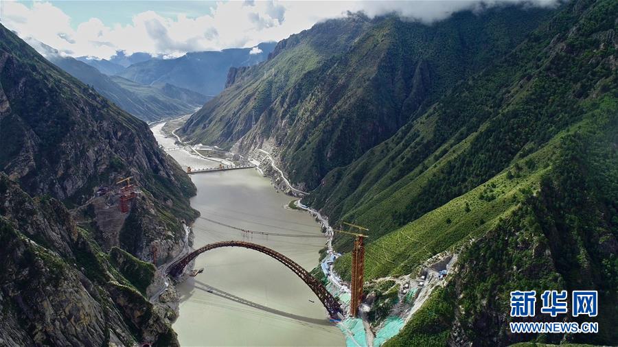 9月28日拍攝的川藏鐵路拉林段重點(diǎn)標(biāo)志性工程藏木特大橋。 當(dāng)日,隨著最后一節(jié)鋼管拱的對(duì)位和鎖定完畢,川藏鐵路拉林段藏木特大橋成功合龍,標(biāo)志著大橋主體結(jié)構(gòu)施工取得了關(guān)鍵性勝利。藏木特大橋由中國中鐵廣州局集團(tuán)承建,拱高112米,橋橫跨雅魯藏布江峽谷,水深66米。 新華社記者普布扎西攝