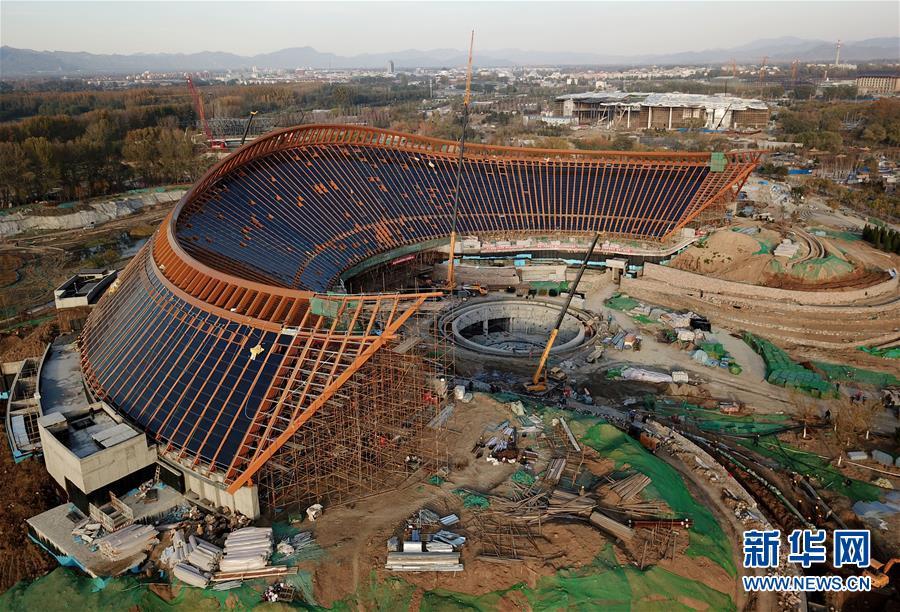 10月18日拍攝的建設(shè)中的北京世園會(huì)國(guó)際館。 新華社記者 鞠煥宗 攝