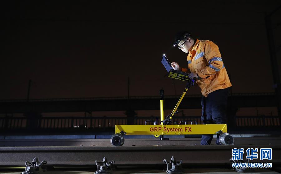 10月18日,劉訓(xùn)飛在滬寧城際上海安亭北線路所42#道岔上使用軌檢小車檢測(cè)線路。 新華社記者 方喆 攝