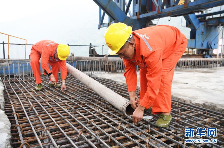 10月23日,在重慶涪陵,施工人員在渝懷鐵路涪秀二線重點(diǎn)工程——烏江右線大橋主跨合龍現(xiàn)場(chǎng)作業(yè)。 當(dāng)日,由中鐵四局承建的渝懷鐵路涪秀二線重點(diǎn)工程——烏江右線大橋主跨成功合龍,標(biāo)志著大橋主體工程全部順利結(jié)束。烏江右線大橋項(xiàng)目全程460.1米,主跨192米,跨越烏江和319國(guó)道。在兩年多的建設(shè)過(guò)程中,施工人員攻克了“不等高墩”“不對(duì)稱邊跨”“邊跨入隧”等多個(gè)技術(shù)難題。 新華社記者王全超攝