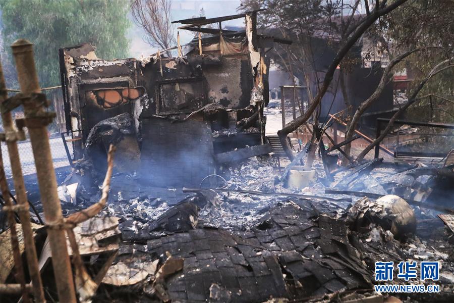 這是11月10日在美國(guó)加利福尼亞州馬里布市拍攝的一處被燒毀的廢墟。連日來,美國(guó)加利福尼亞州野火肆虐。 新華社記者李穎攝