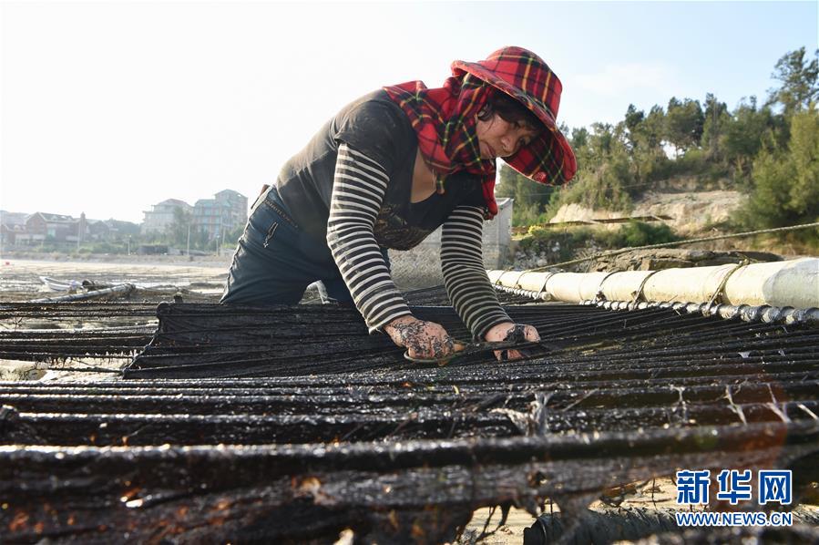 10月24日,福建莆田蔣山村村民在收獲紫菜?! ⌒氯A社記者姜克紅 攝