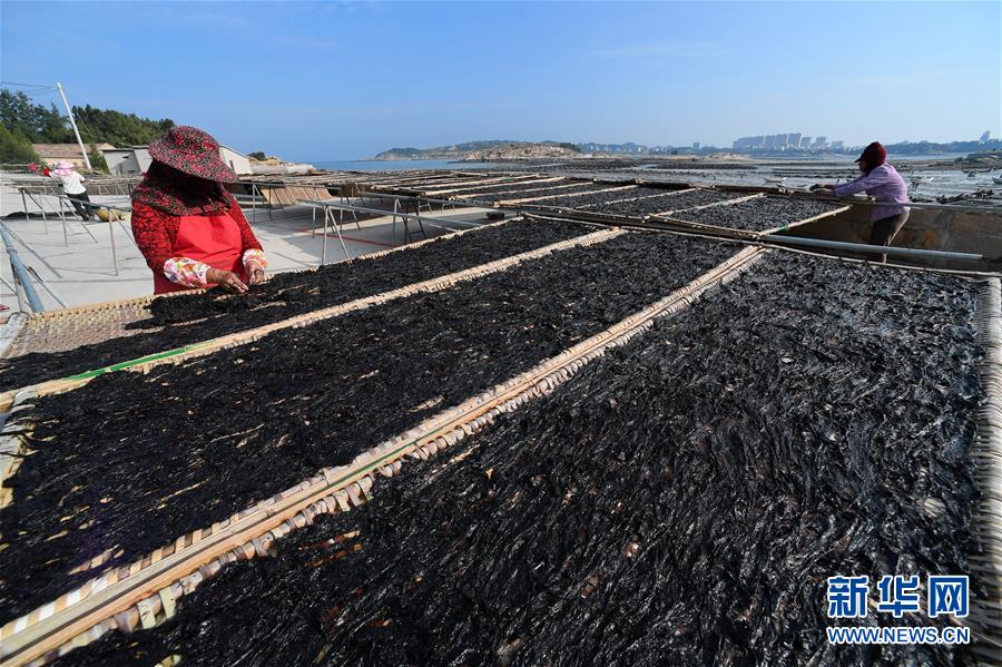 10月24日,福建莆田蔣山村村民在曬紫菜?! ⌒氯A社記者張國俊 攝
