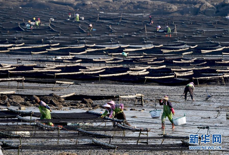 10月24日,福建莆田蔣山村村民在收獲紫菜?! ⌒氯A社記者張國俊 攝